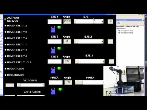 servo controllers phidget.mp4 - Phidgets Servo Controller - control de un robot didactico con tarjeta phidget y una HMI con programacion en visual basic via USB.