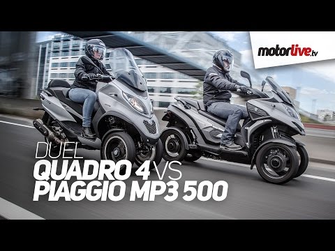 DUEL | 1er comparatif QUADRO 4 vs PIAGGIO MP3 500 2015, 3 ou 4 - Avantage Inconvenient Scooter 3 Roues - Premier duel entre le Piaggio MP3 500 et le Quadro 4. La star du marché du 2 et 3 roues face à ce scooter 4 roues qui pourrait très bien lui voler la vedette ...