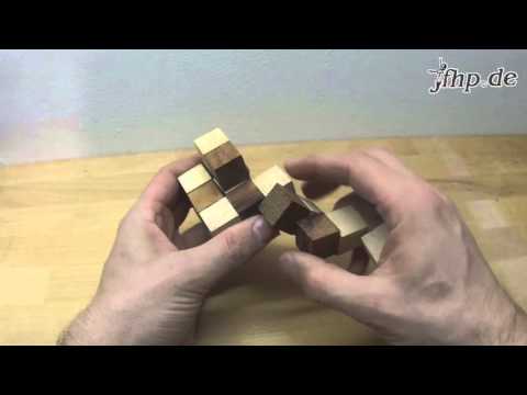 Lösung Knobelspiel Schlangenwürfel / SnakeCube - Knobelspiele Holz - Der Schlangenwürfel bzw. SnakeCube besteht aus vielen kleinen Einzelwürfeln, die mit einer Gummischnur miteinander verbunden sind. Aus der Schlange soll ...